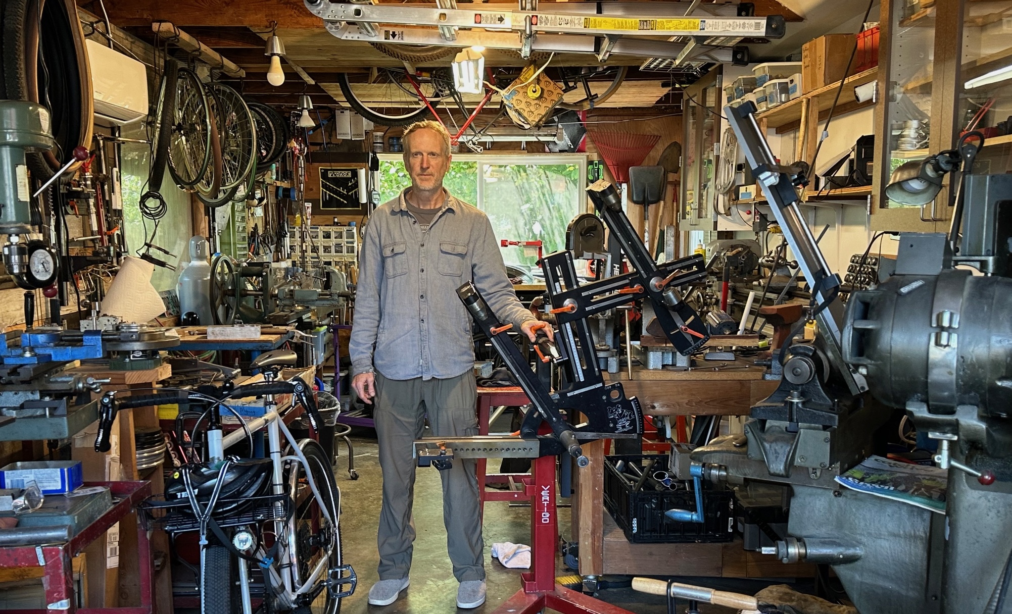 After 20 years in Portland, Ahearne moved last year to Newport, relocating the workshop for Ahearne Cycles to the garage of his home.