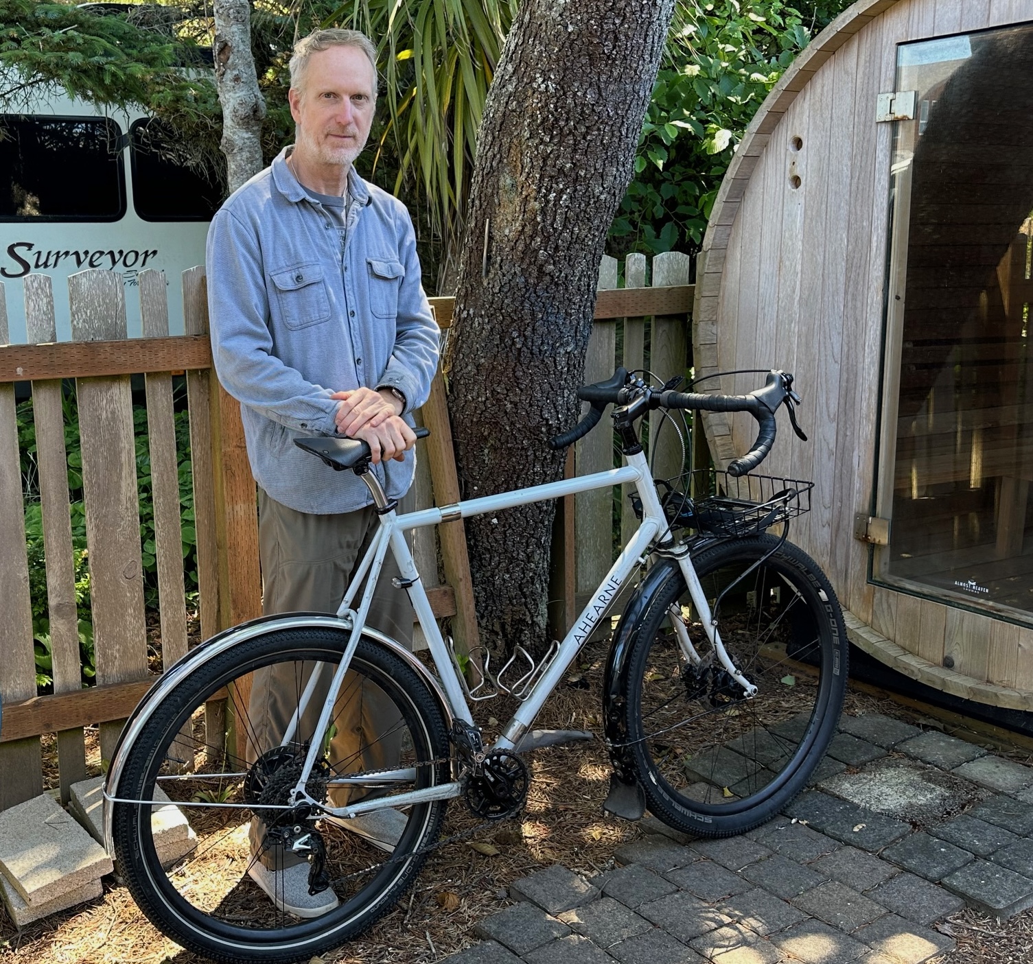 If they are cyclists who are commuters or are planning days-long or months-long rides, they might hope to have a touring bike made by Joseph Ahearne of Newport. Besides being an expert bike-builder, Ahearne is well-known for the custom racks he builds, critical for carrying gear.