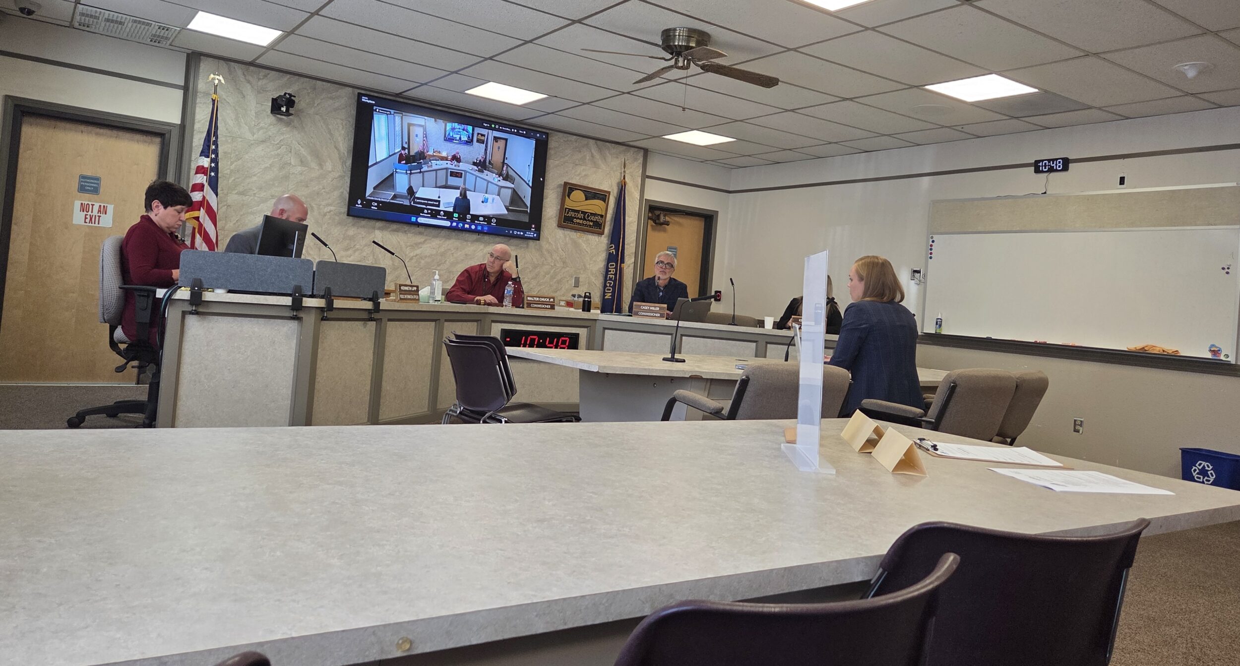 Shayla Escudero / Lincoln Chronicle Lincoln County District Attorney Jenna Wallace tried to speak during the public comment period of the county commission meeting Wednesday, but was told by chair Walter Chuck that she could not because she signed up after the start of the meeting, not before.