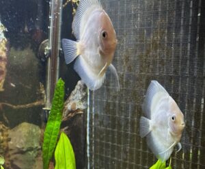 I also spend a lot of caring for my discus fish – I have three breeding pairs and I hope to one day successfully bring some eggs all the way to adulthood. It’s a tricky process – lots of steps must happen correctly – and so far I haven’t succeeded. Discus fish come in every color under the rainbow, and their color can change over time. They are native to the Amazon, but they can’t be exported any longer. All that are sold in the U.S. today have been born in captivity.