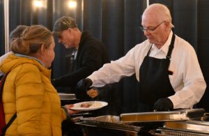 The Newport Armory was turned into a giant, elegant dining hall Wednesday afternoon as South Beach Church staged its 11th annual The Day Before Thanksgiving Meal to any and everyone who had an appetite. By noon Wednesday a large line had already formed inside the armory as dozens of people waited to be served turkey, mashed potatoes, stuffing, candied yams, green beans, rolls and cranberry sauce.