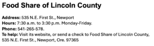 NEWPORT – By the end of this week, more than 4,450 households in Lincoln County could lose access to federal food assistance.