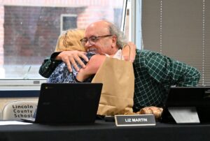 For Martin, Tuesday night’s board meeting was a full circle moment. The meeting location rotates between different Lincoln County schools and her last meeting took place at her old high school, Taft 7-12. As she walked through the hallway, she passed large black and white posters of graduates, and there was her picture underneath the banner “Class of 1976.”