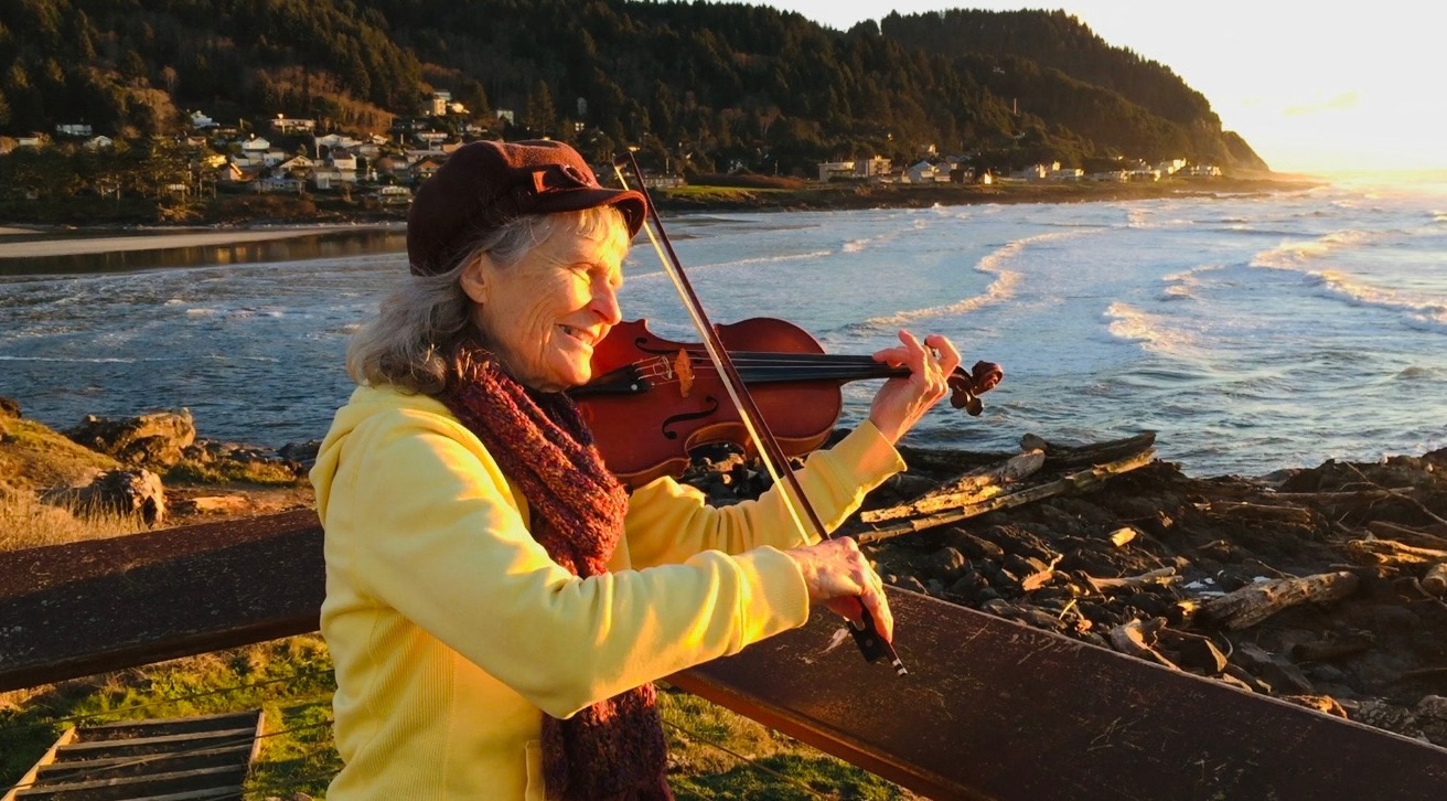 Rain or shine, she walked daily along the 804 Trail with her violin, offering music to both ocean and passersby. Her family treasured their visits to her Yachats, with time always filled with music and walks.