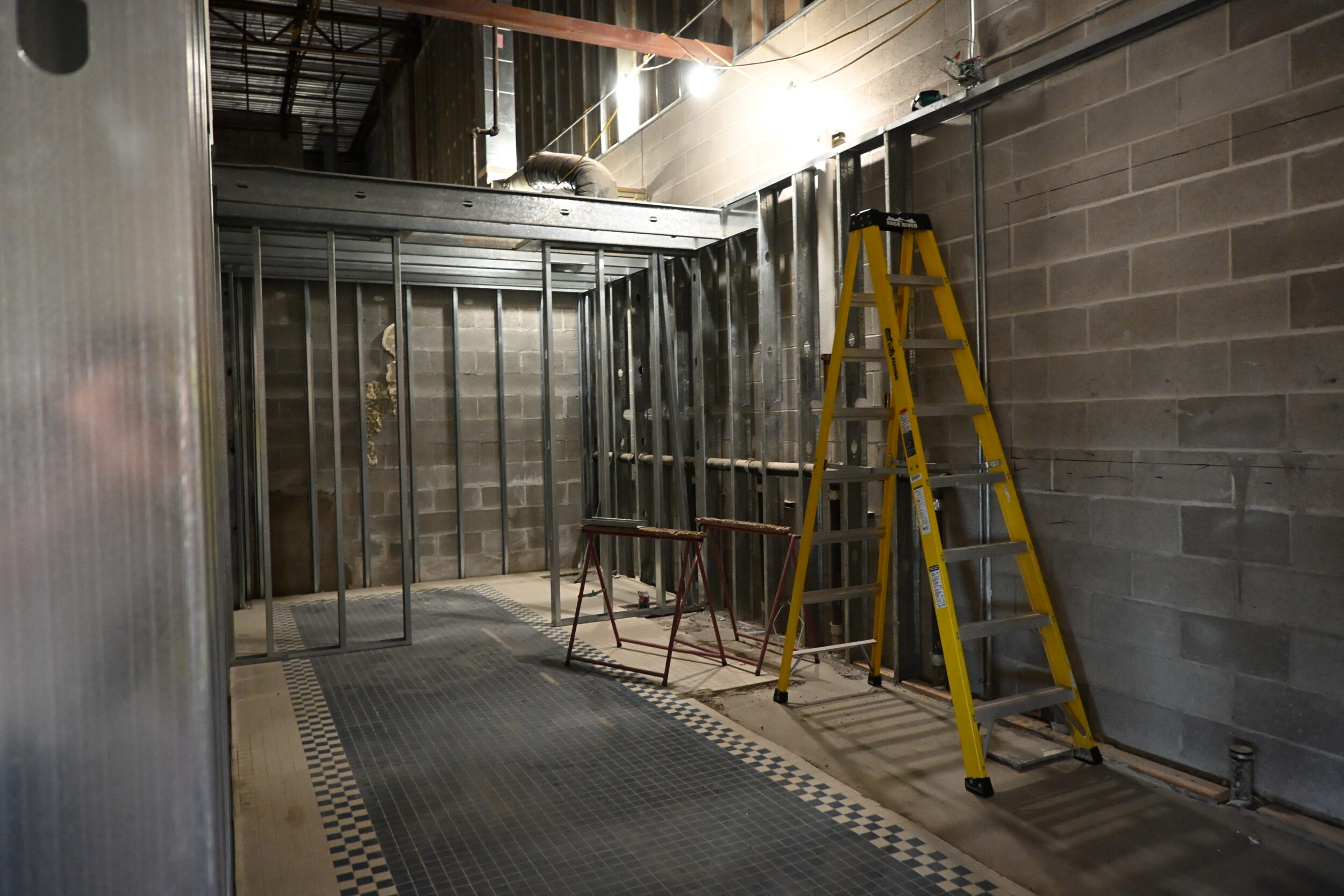 Inside Taft High School, rotary hammers drill into concrete flooring as shovels at the ready, lean against the dimly lit hall.