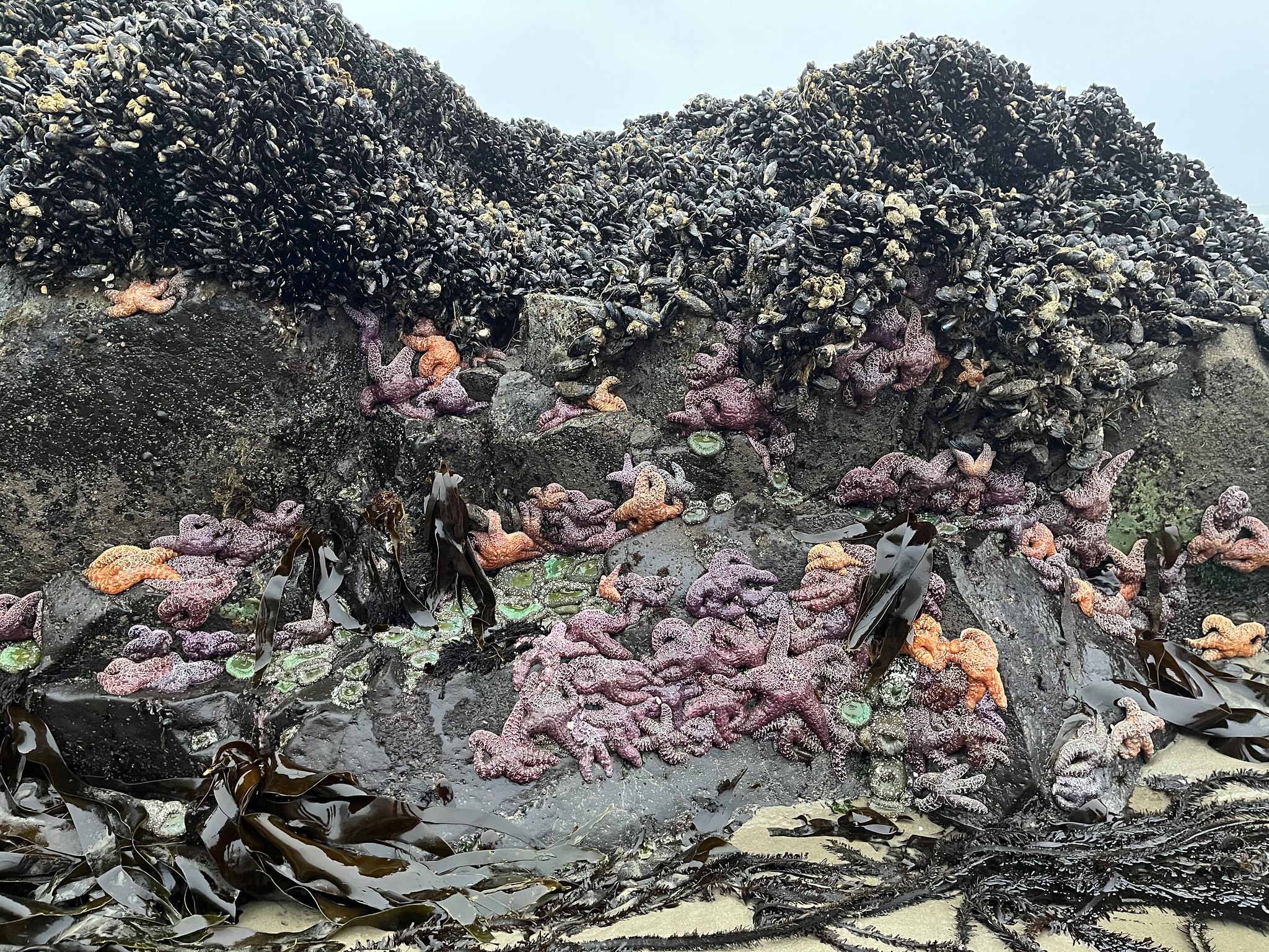 That means the mussels are unable to form the beds that blanket intertidal rocks and make life difficult for other invertebrates and seaweeds – the sea stars’ predation opens up room for more species to potentially thrive.
