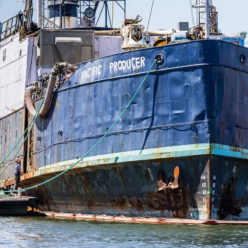 Noticing the derelict vessel on patrol, the Tacoma Fire Department conducted an inspection. Upon entering a lower deck, the department’s crew noted a smell of ammonia so strong “it was felt in our eyes and nose.” That sounded the alarm for a myriad of federal, state and local agencies to respond. When Washington Department of Ecology officials arrived, they noticed water in the bottom of the ship that grew heavier each day. Now, the concern was that the Pacific Producer was sinking.