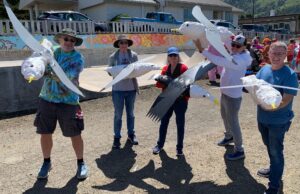 “Making people laugh is the best part,” said Jonathan Fletcher, one of those who wears a large seagull on the end of his arm that with a pull of his hidden finger releases its load. “Cruising by the sidelines and pooping as close as you can without actually landing on somebody, that’s the challenge. We reduce it to potty-humor but there’s lots of laughs, everybody gets a little chuckle.”