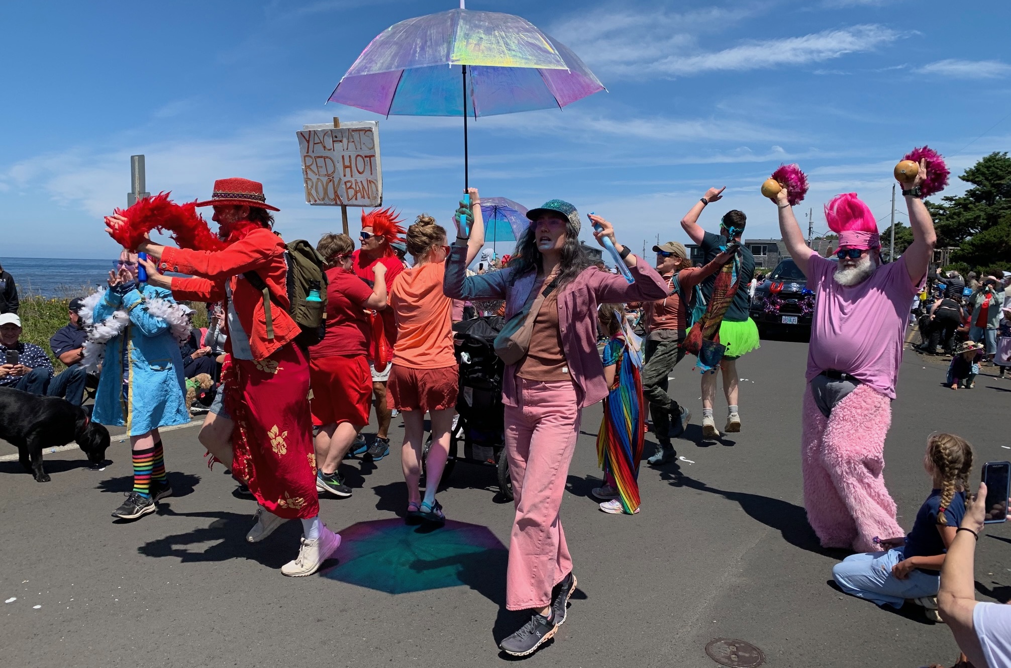Such is the nature of the eclectic La de da Parade with its colorful and eye-popping Precision Umbrella Drill Team or the exuberant and uplifting Yachats Red Hot Rock Band.