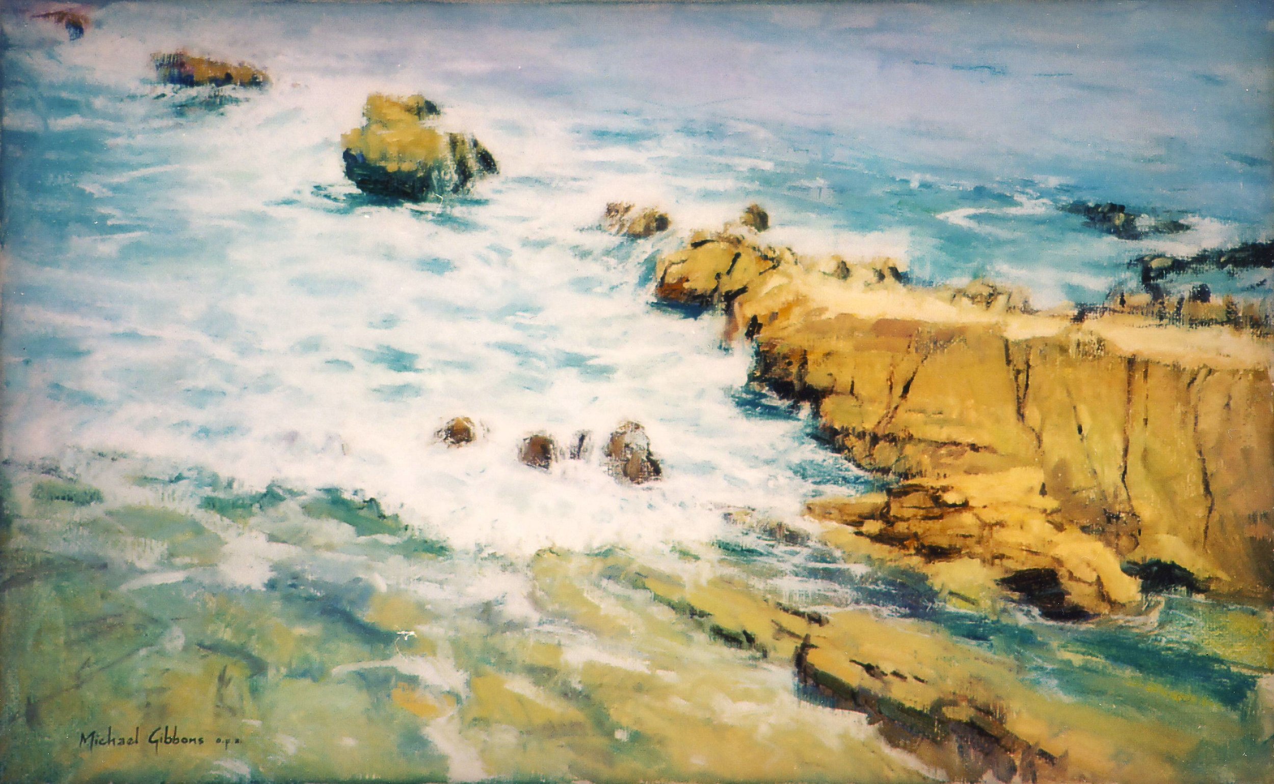 Just across the street, The Michael Gibbons’ Signature Gallery, will feature a special spotlight on “Laguna Gold,” a warm seascape by the late regional artist that makes the viewer want to wade out into the crystal blue water. Although known for his works in the Pacific Northwest, Gibbons had strong connections with many plein air groups in California, including the Laguna Plein Air Painters Association in which he was a signature artist. “Laguna Gold” was painted in 2000 for the Laguna Plein Air Invitational.