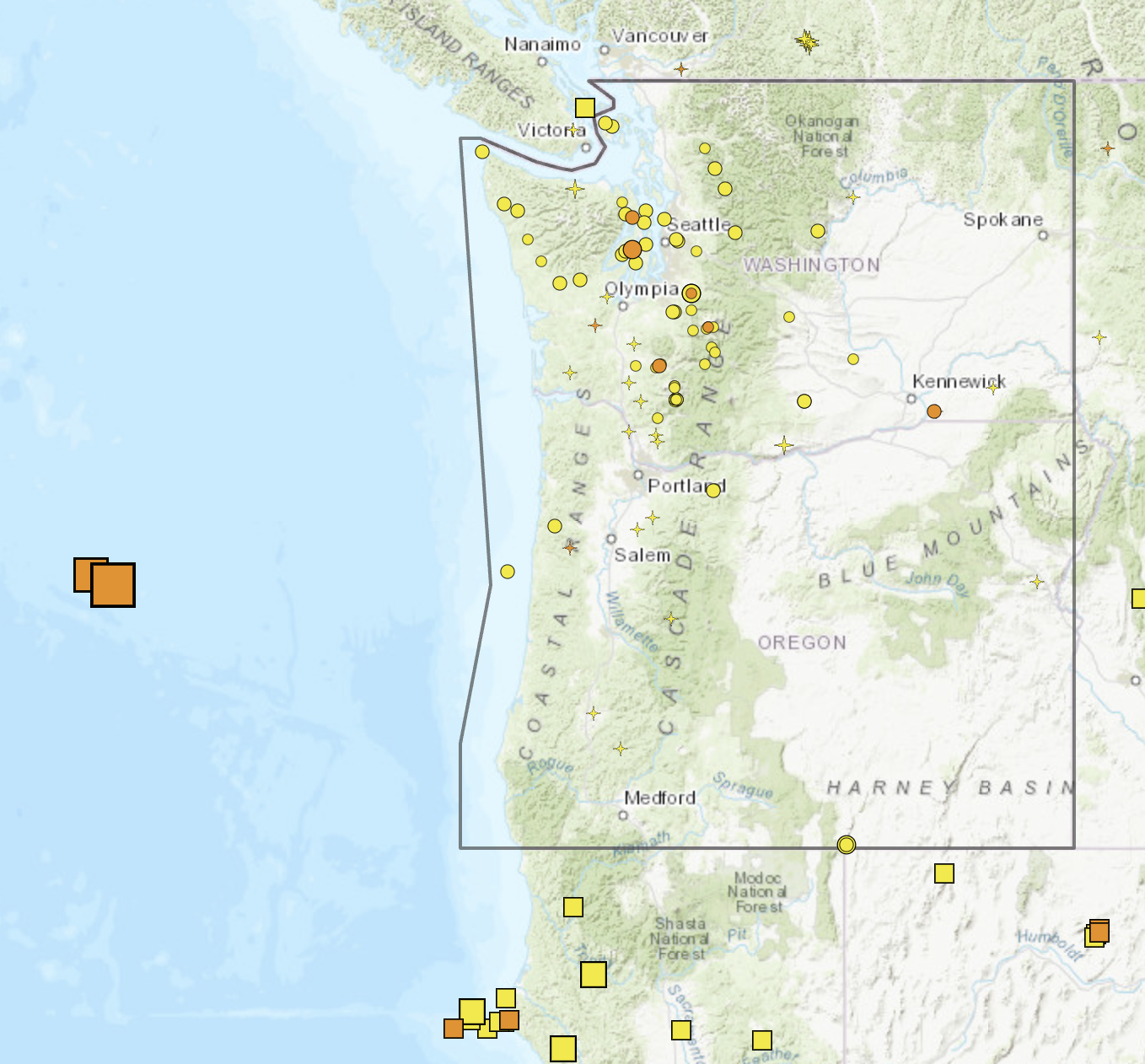 Blanco fracture zone, which is among the most seismically active in North America and part of the boundary of the between the Pacific plate’s eastern edge and the Juan de Fuca plate’s western edge. The Blanco zone is much farther west of the more concerning Cascadia subduction zone and rarely leads to destructive quakes, according to earthquake experts.