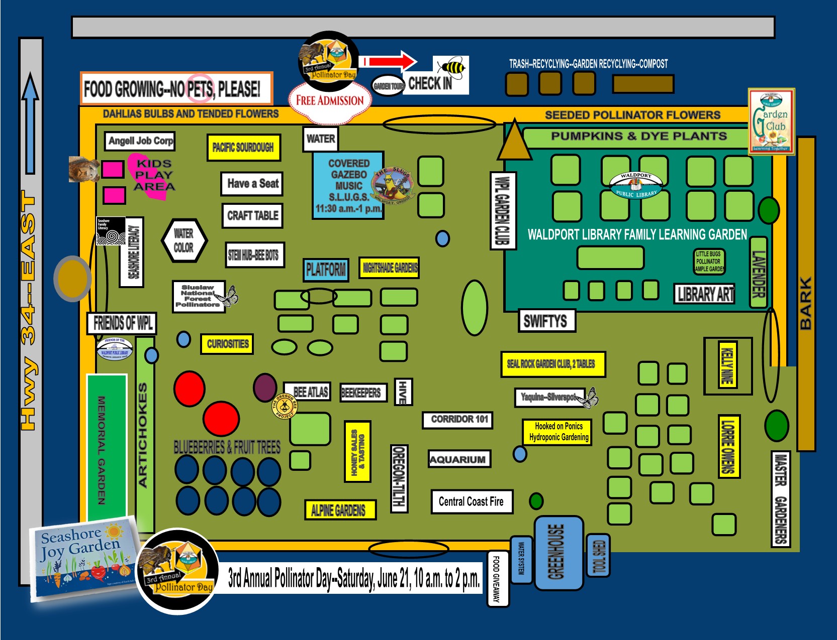 Some 25 organizations, individuals and businesses are involved in Pollinator Day, which is hoped to draw over 250 people. They include Siuslaw National Forest Pollinators, Seal Rock Garden Club, Waldport Library Garden Club, Pacific Sourdough, the JW Merc honey stand offering honey tastings, Friends of the Waldport Library and Seashore Family Literacy.