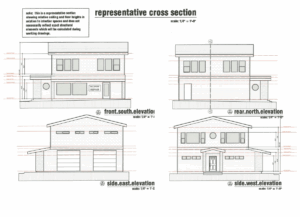 The office will run the length of the building’s south side and be fronted by a new sidewalk that the building’s roof – with lighting pointing down – will overhang. The bay doors will face east where there will be a parking lot with five spaces. Two more parking spaces will be located on the north side of the building. The west side will have a more residential look with stairs going up between the apartments.